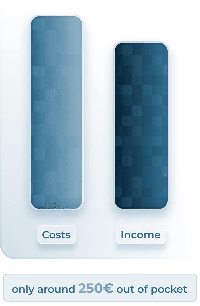 approx. €250 monthly out of pocket